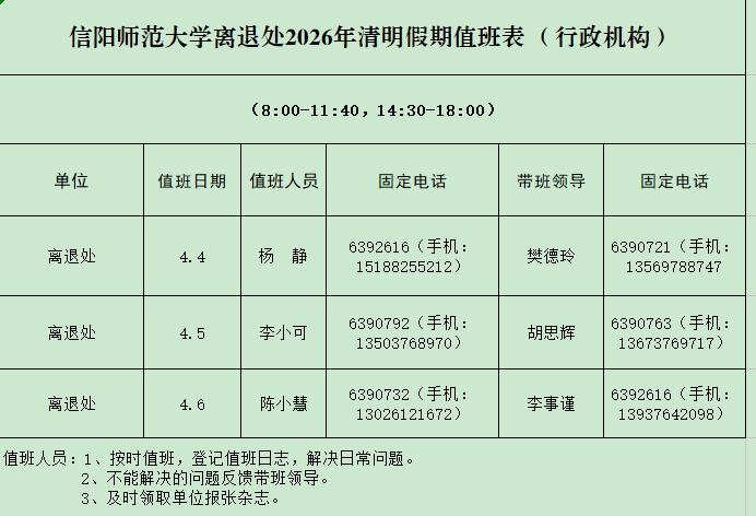 离退休职工管理处2025年清明假期值班表